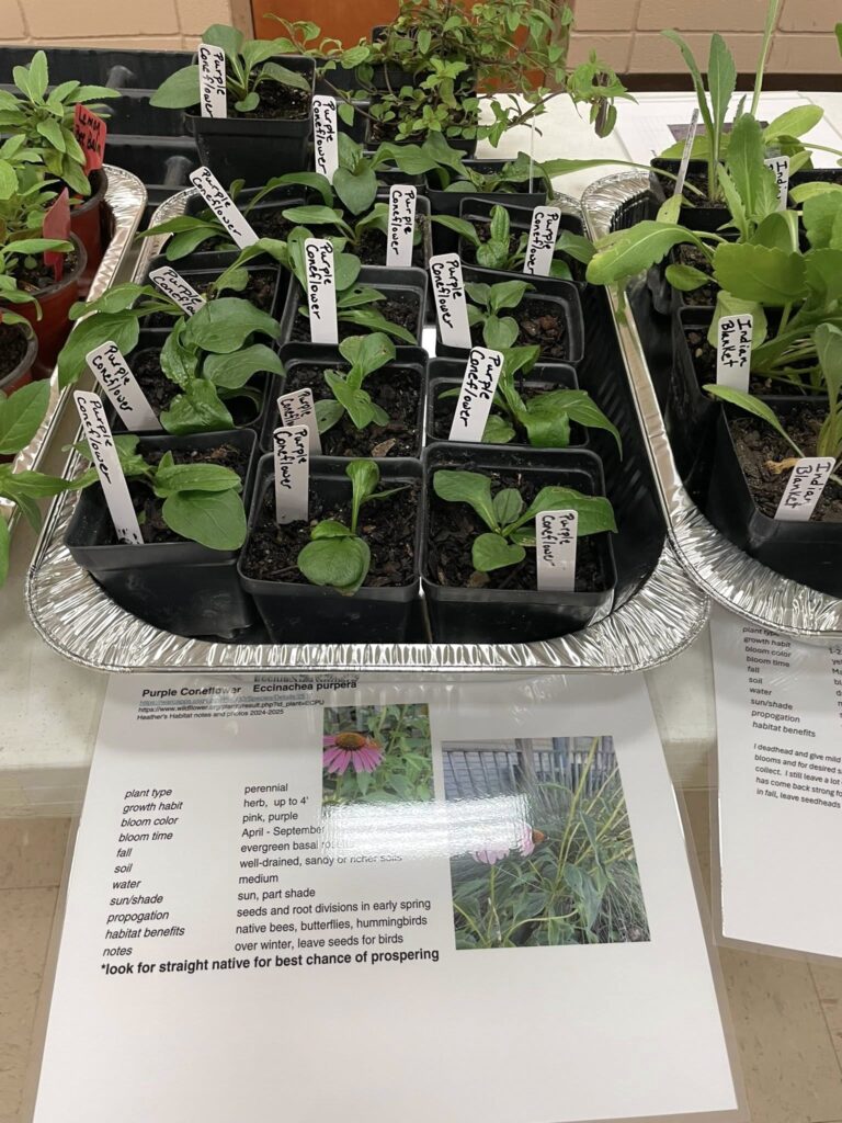 In addition, Heather Blanchard invited her native plant-loving friends to speak at the PGC meeting, with whom she collaborated on presentation content. Donna Carville, PGC Vice President, answered multiple questions along the way, handled set up, and helped package Scarlet Sage (Salvia coccinea) seeds. These seeds, along with handouts from Peggy Coates, were given to club members.