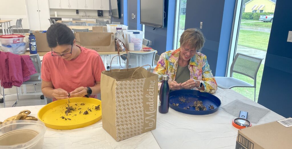 Members amusingly learned firsthand how Texas Star Hibiscus (Hibiscus coccineus) seeds shoot everywhere, and how Joe Pye Weed (Eutrochium dubium) seeds look very similar to the chaff. Many thanks to our Seed Collection Co-Chairs, Kate Weinell and Katrina Hashagen, and Vice President Allison Gianelloni for arranging the event.