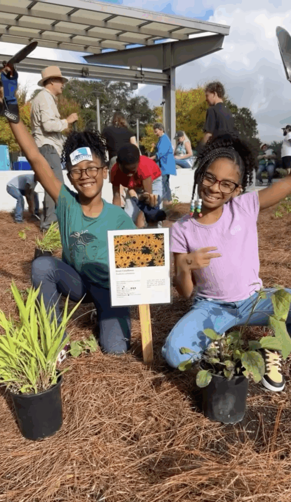 On November 8, 2025, the Baton Rouge community came together in a big way to install a brand-new, large-scale native plant pollinator garden in the front of the main branch of the East Baton Rouge Public Library (EBRPL).